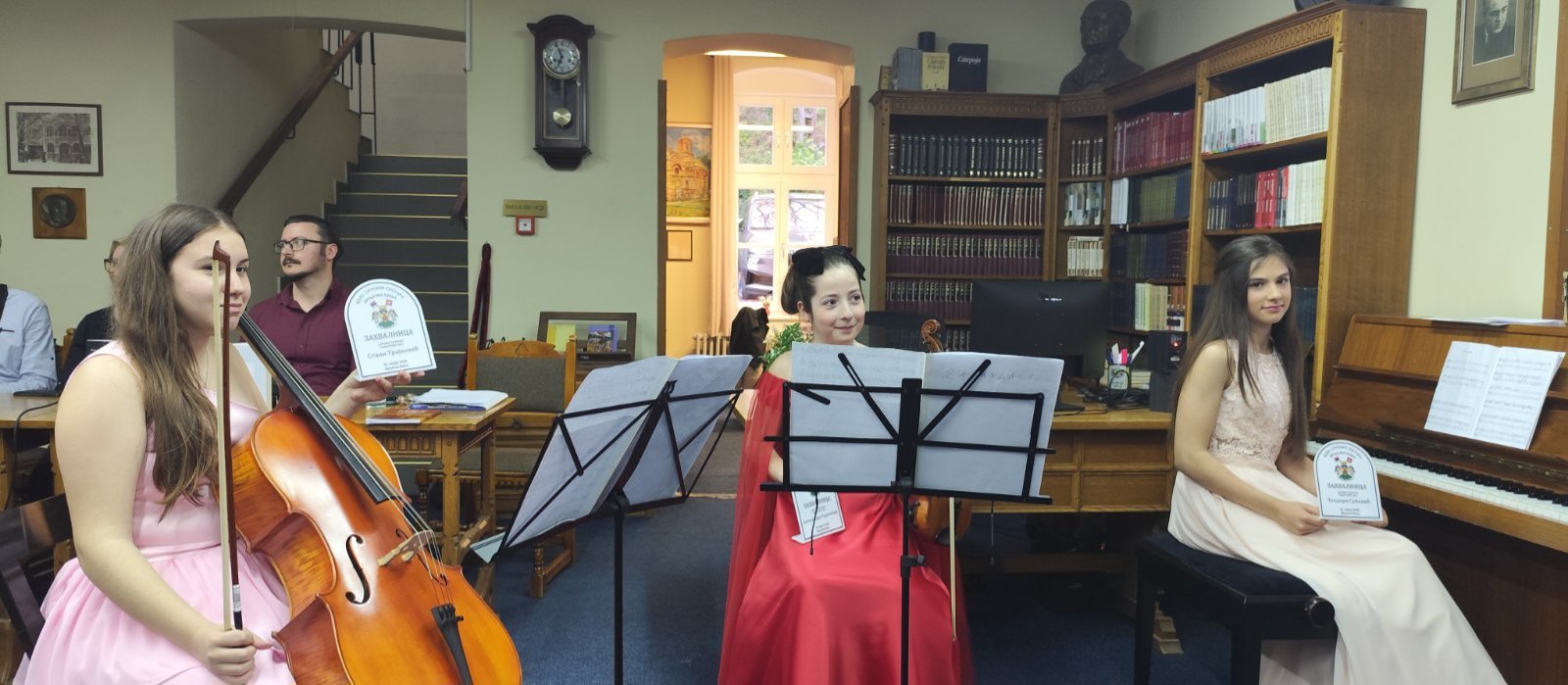 Наш Клавирски трио – Александра Радичевић (класа Анушке Николић), Стана Трајковић (класа Предрага Михаиловића) и Теодора Грбовић (класа Ива Бастајић) – својом интерпретацијом улепшао је ово посебно окупљање и унео топлину у сваки тон.